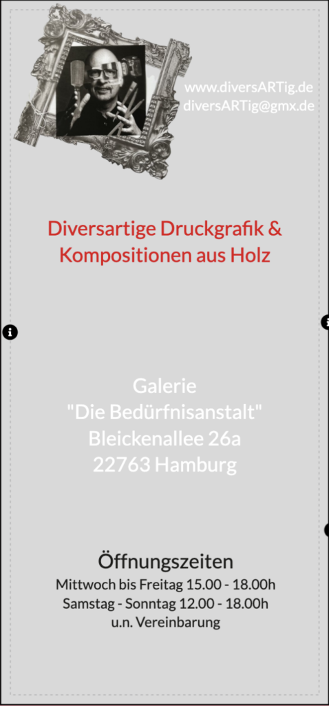 Ein großer Dank gilt meiner Familie (Silke, Tom und Nick) nebst Freund Jan für die grandiose Unterstützung vor, während und nach der Ausstellung. Ebenso danke ich Susanne vom Verein der Bedürfnisanstalt.